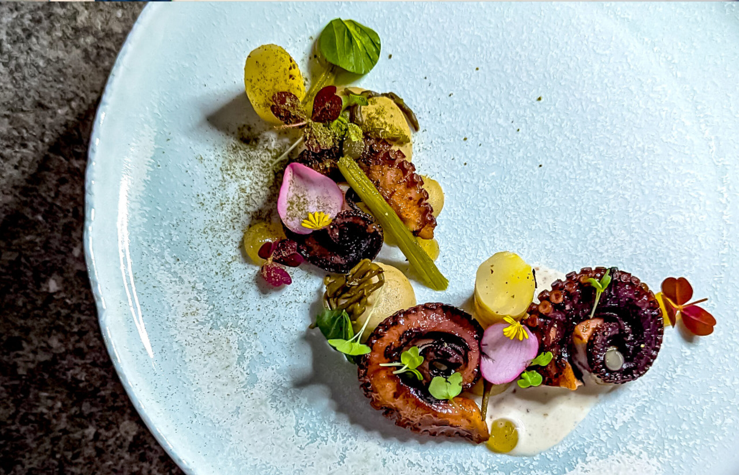 Attaché aux produits de saison et aux richesses du terroir, il aime travailler les produits locaux et jouer avec les épices pour apporter relief et personnalité a ses créations. Sa cuisine, à la fois lisible et généreuse, traduit une recherche constante d’équilibre, de justesse et d’émotion, au service d’une expérience authentique et gourmande.